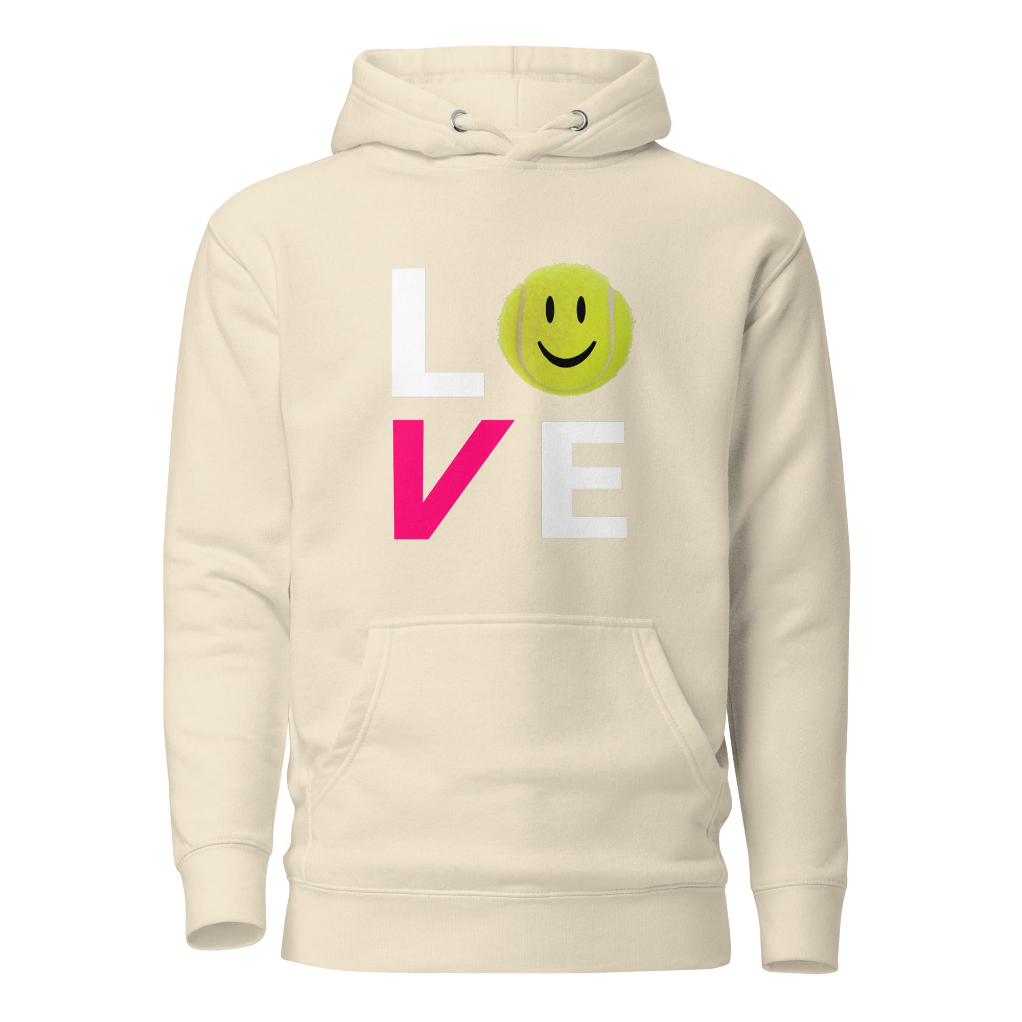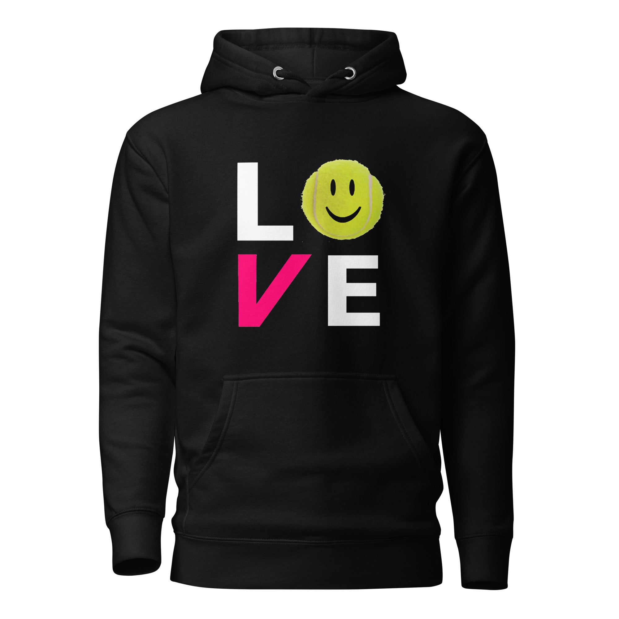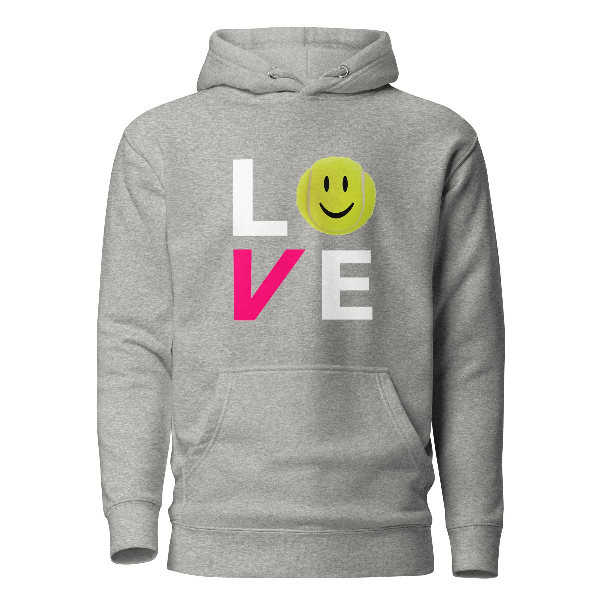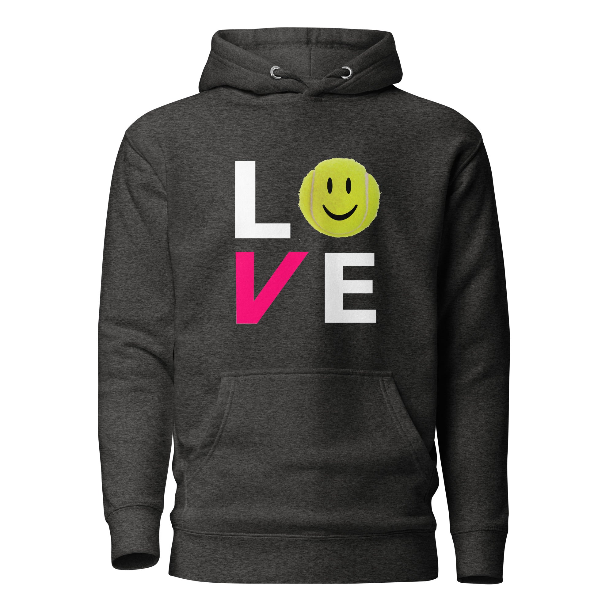 This cozy hoodie says it all — LOVE. Featuring our signature smiling tennis ball design, it’s the ultimate blend of warmth, style, and good vibes for players who know that joy is the real win.